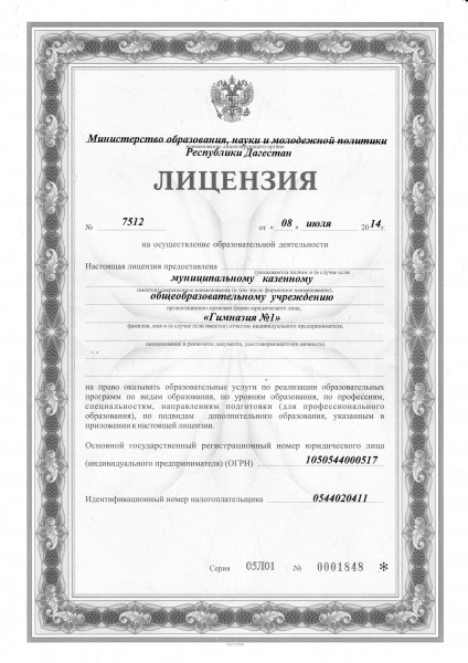 | Полное наименование образовательной организации* | Муниципальное казённое общеобразовательное учреждение «Гимназия № 1» |