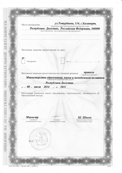 | Адрес местонахождения образовательной организации* | 368000, Руспублика Дагестан, город Хасавюрт, улица Тотурбиева, 114 |